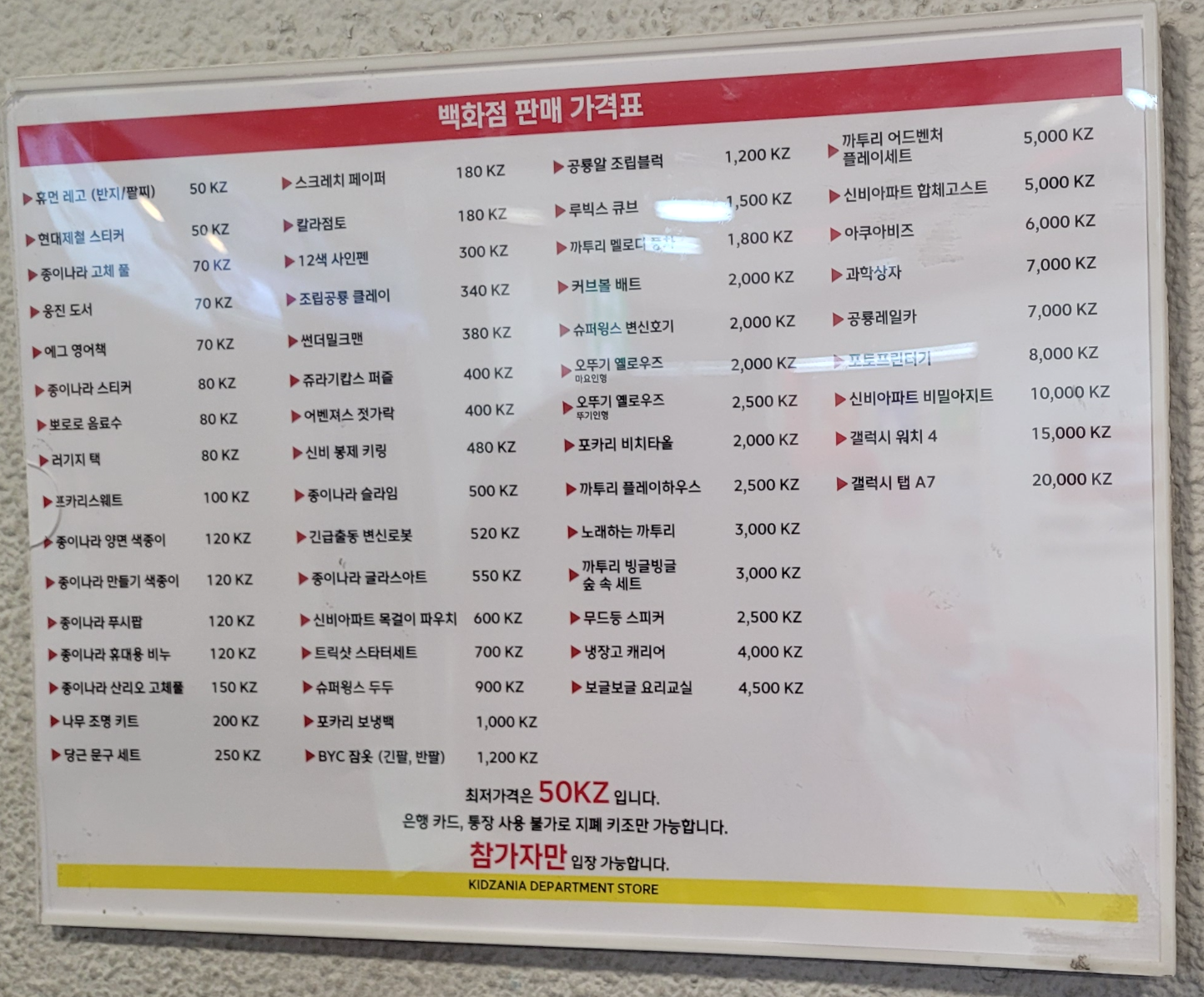 4. 키자니아 서울 백화점 운영시간, 가격표